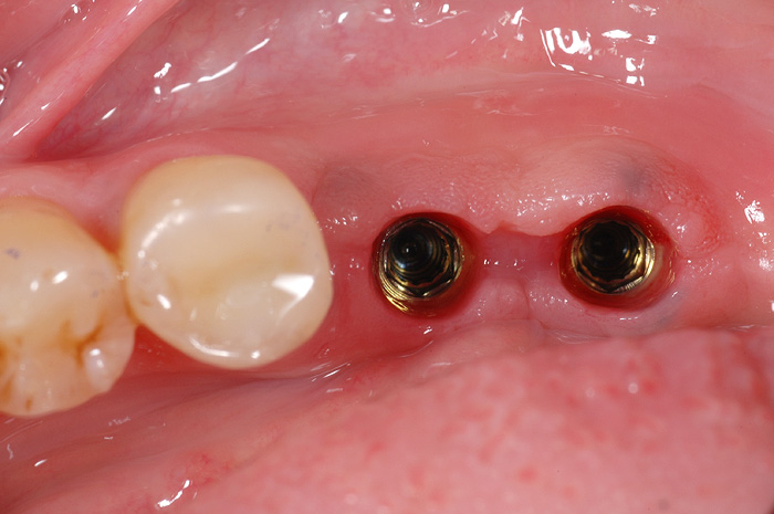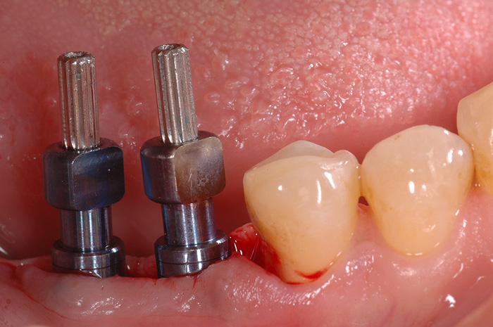 Ein Implantat ist eine schraubenförmige, künstliche Zahnwurzel aus Titan. Das Implantat dient als Fundament für einen Zahnersatz, entweder eine festsitzende Krone oder als eine Prothesenverankerung.