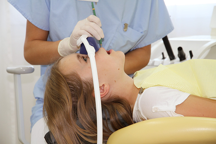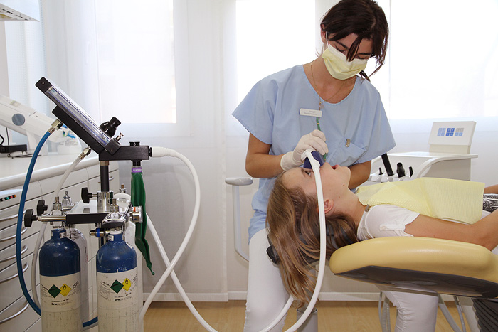 Wenn es zu einer Behandlung kommt, führen wir diese einfühlsam und sorgfältig durch. Hier kann eine entspannende und angstlösende Lachgasanalgesie von Vorteil sein.