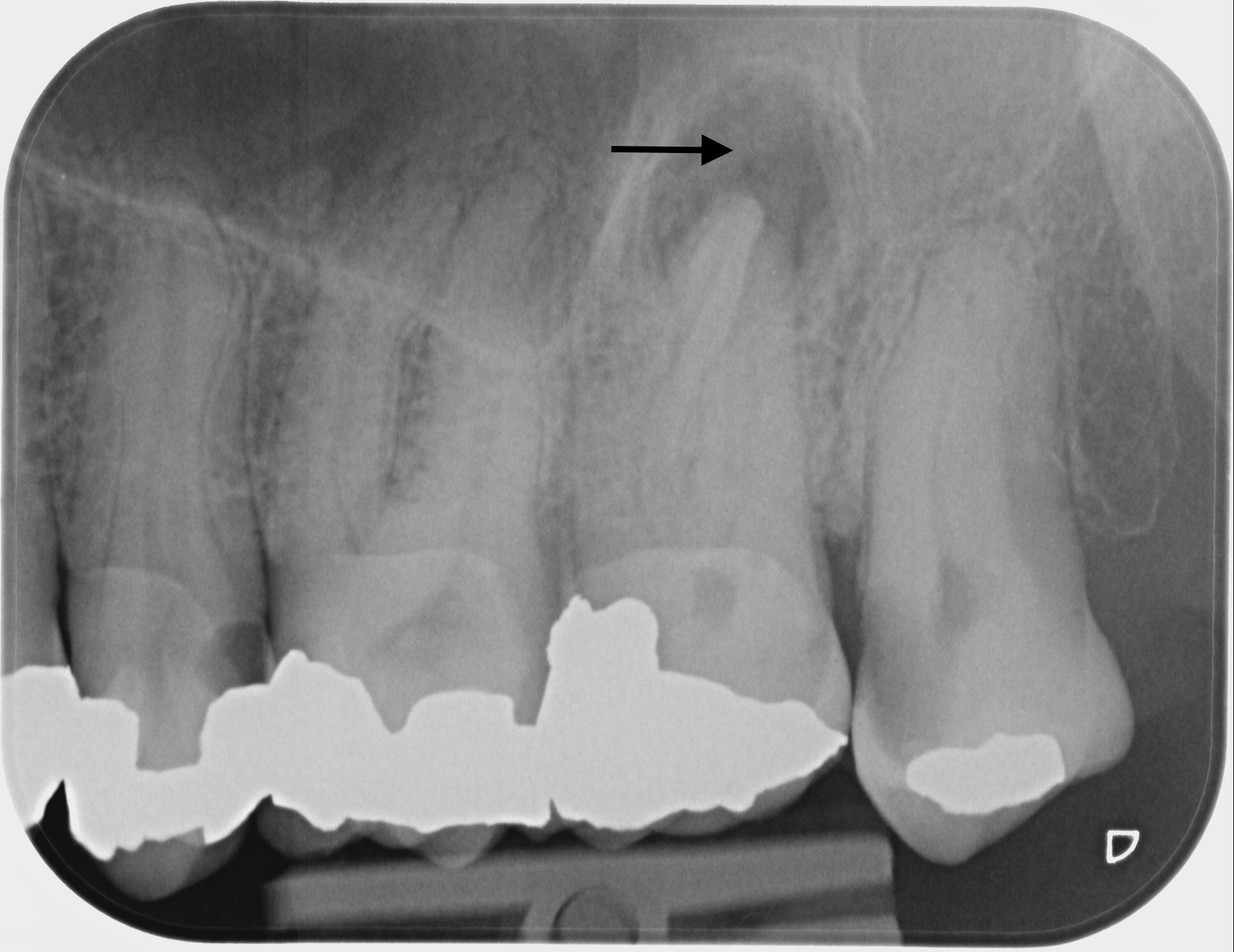Wird eine Entzündung nicht rechtzeitig behandelt, gelangen die Bakterien über die Wurzelspitze in den Kieferknochen und ein Abszess kann sich entwickeln.